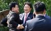 권성동 자유한국당 의원이 24일 강원랜드 채용비리 사건 1심 선고공판에서 무죄를 선고받은 후 서울중앙지법을 나와 장제원 의원과 기뻐하고 있다./뉴시스 |