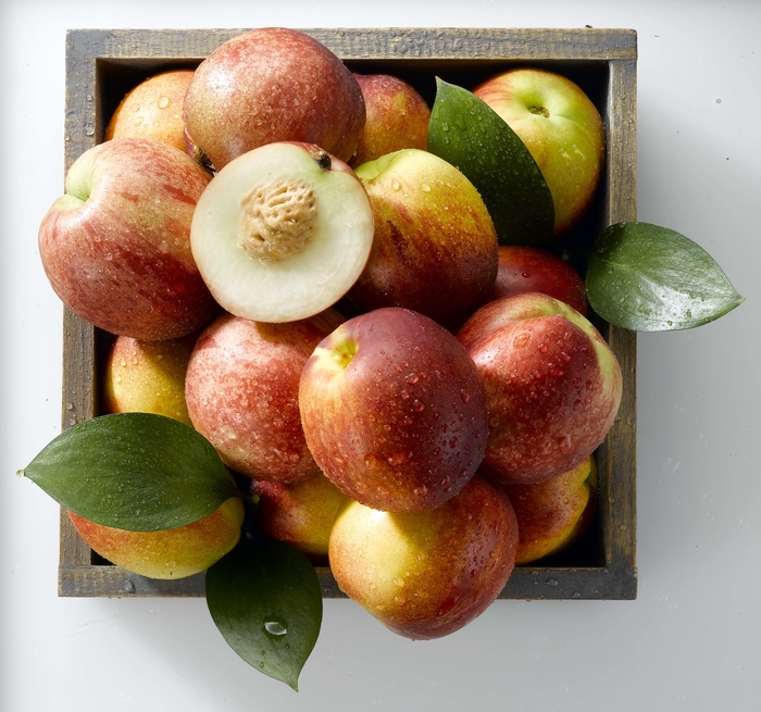 신비복숭아는 천도와 백도의 두 가지 장점을 하나로 합친 신품종이다. 천도처럼 겉이 붉고 털이 없으며, 속은 백도처럼 하얗고 부드럽다.