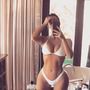 공개된 사진 속 킴 카다시안은 흰색 아찔한 비키니를 입고 셀카를 남기고 있는 모습. 비현실적으로 과장된 골반이 인상적이다.