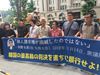강제동원 피해자 양금덕 할머니와 한일 시민모임 회원 등이 지난 27일 오전 도쿄 지요다구 미쓰비시중공업 본사 앞에서 일본 정부가 한국 대법원 판결을 이행할 것을 촉구하고 있다. 도쿄|김진우특파원 |