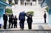 군사분계선 넘는 트럼프 - 도널드 트럼프(왼쪽) 미국 대통령이 30일 김정은(오른쪽) 북한 국무위원장의 안내를 받아 판문점 군사분계선 북측 지역으로 향하고 있다. 트럼프 대통령은 김 위원장의 안내를 받아 북측 지역인 판문각 앞까지 월경해 김 위원장과 함께 기념사진을 촬영했다. 트럼프 대통령은 이날 북측 지역의 판문각 쪽을 향해 군사분계선을 넘음으로써 1953년 7월 6·25전쟁이 ‘정전협정’으로 중단된 이후 66년 만에 미국 현직 대통령 중에서는 최초로 북한 땅을 밟았다.판문점 연합뉴스 |