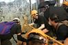 시위대는 또 입법회 건물 안으로 쉽게 진입하려고 1층 외부에 둘러놓은 긴 금속 패널도 무더기로 떼어냈다.