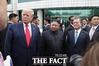 도널드 트럼프 미국 대통령과 김정은 북한 국무위원장이 판문점 공동경비구역(JSA) 군사분계선을 넘어 북측으로 갔다 다시 남측으로 넘어오고 있다. /뉴시스 |