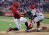 텍사스 추신수가 5일 LA 에인젤스와 홈경기에서 4회말 공격에서 슬라이딩하며 홈에서 득점하고 있다. AP연합뉴스 |