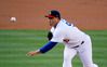 류현진이 5일 홈구장인 미국 캘리포니아주 로스앤젤레스 다저스타디움에서 열린 샌디에이고와의 리그 경기에서 역투를 하고 있다. LA=AP연합뉴스 |