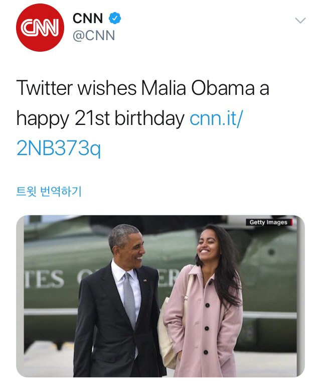 CNN방송은 독립기념일인 4일(현지시간) 말리아의 21번째 생일을 축하하는 트윗이 쏟아졌다고 보도했다. 이날 트위터에는 말리아의 사진과 함께 “퍼스트 도터의 아이콘, 말리아 오바마의 생일을 축하한다” “7월 4일은 ‘영원한 퍼스트 도터’의 기념일. 재능있고, 똑똑하며, 아름다운 말리아 오바마의 생일을 축하한다”는 등의 트윗이 쇄도했다. 오바마 전 대통령도 이날 트위터에 옛날 가족사진과 함께 “미국을 축하하는 날이자 말리아의 생일인 오늘은 오바마 가족에게도 기쁜 날”이라며 딸의 생일을 축하했다.