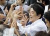 아베 신조 일본 총리가 선거 유세에서 지지자들과 인사하고 있다.[연합] |