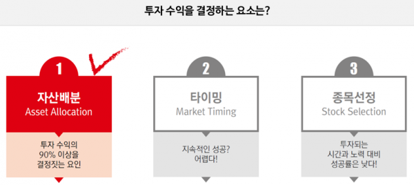 투자기간별 수익률 추이 이 펀드의 투자포인트는 투자 수익의 90% 이상은 자산배분에서 얻도록 글로벌 선진국 주식과 국내 채권의 조합을 통해 최적의 투자자 맞춤형 자산배분 포트폴리오를 제공 장기 변동성으로 국내외 시장 하락 시기에도 시장 상황에 상관없이 상대적으로 양호한 성과를 유지하는 투자 상품 투자기간이 길어질수록 비례하여 수익률이 높아져 결국 ‘이기는 투자’를 가능하게 한다.