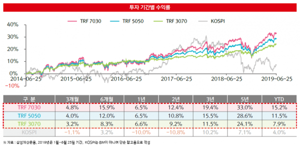 삼성자산운용은 투자자 자신의 투자성향에 따라 ETF(상장지수펀드)의 ‘위험 수준’을 유지하기 위해 위험자산과 안전자산의 ‘자산배분’ 비중에 의해 위험을 조정-제한하면서 안정적인 수익을 추구하는 ‘TRF(Target Risk Fundㆍ타깃 리스크 펀드) 3종’ 시리즈펀드를 출시했다.