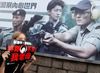 홍콩 경찰 모집 포스터가 붙은 담장 아래서 홍콩의 한 여성이 "캐리 람 행정장관은 더는 우리의 어머니가 아니다"라는 문구가 적힌 플래카드를 들고 있다. [로이터=연합뉴스] |