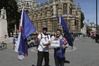 영국 수도 런던의 의회 밖에서 4일(현지시간) 유럽연합(EU) 탈퇴(브렉시트)에 반대하는 시위대가 '취소'라고 적힌 팻말을 들고 서 있다.AP뉴시스
