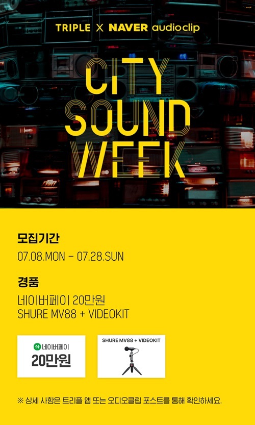 이번 시티사운드위크를 통해 트리플과 네이버는 각 도시만이 지닌 특색을 사진이나 영상이 아닌 ‘소리’로 담아 공유할 여행자를 공개 모집한다.