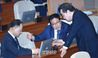 이낙연 국무총리(오른쪽)가 10일 국회 본회의장에서 열린 경제 분야 대정부질문에 앞서 홍남기 경제부총리 겸 기획재정부 장관(왼쪽), 유영민 과기정통부 장관과 대화하고 있다./권호욱 선임기자 |