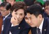 김현미(왼쪽) 국토교통부 장관과 김경욱 국토부 2차관이 8일 오전 열린 국회 국토교통위원회 전체회의에 참석해 대화하고 있다. 사진=연합뉴스 |