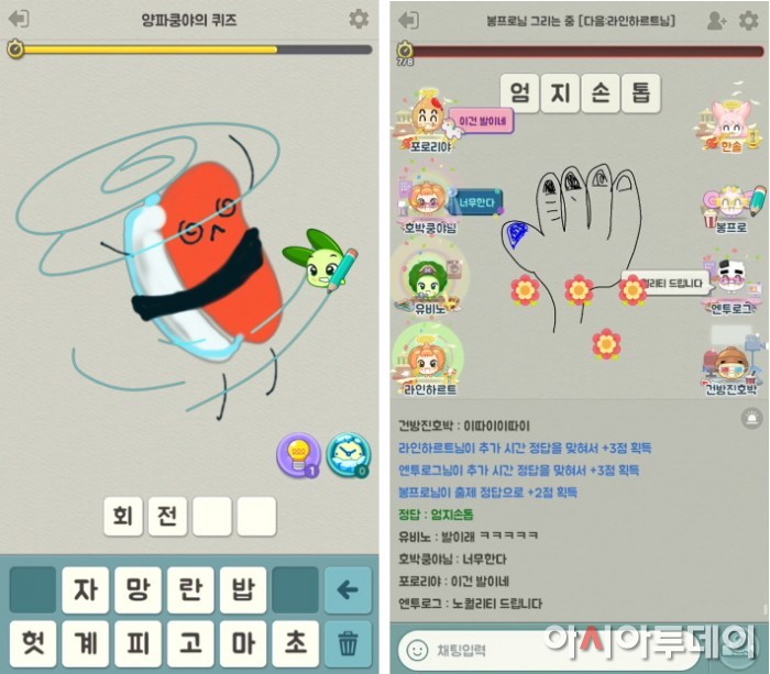 원작의 실시간 모드는 다각도로 진화했다. '모두의 퀴즈방', '동네 퀴즈방', '프리미엄 퀴즈방' 등 인원 단위로 확장돼 점수를 획득하고 랭킹을 가리는 방식이다.