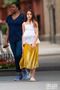 공개된 사진 속 수리 크루즈 금색 치마에 흰색 민소매 상의를 입고 이동 중인 모습. 수리 크루즈는 미남 배우 아빠를 닮은 외모를 자랑해 눈길을 끌었다.