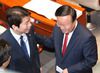 더불어민주당 이인영 원내대표(왼쪽)가 12일 오전 열린 국회 예산결산특별위원회 전체회의장 을 찾아 자유한국당 소속 김재원 위원장과 대화하고 있다. [연합] |