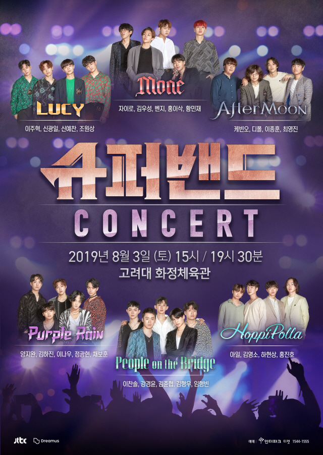 이번 전국 투어에는 ‘슈퍼밴드’ 결선 라운드에 진출했던 6팀이 나선다. 우승을 차지한 ‘초대 슈퍼밴드’ 호피폴라(아일 김영소 하현상 홍진호)와 준우승팀 루시(이주혁 신광일 신예찬 조원상)는 물론, 퍼플레인(양지완 김하진 이나우 정광현 채보훈), 모네(자이로 김우성 벤지 홍이삭 황민재), 애프터문(케빈오 디폴 이종훈 최영진), 피플 온 더 브릿지(이찬솔 강경윤 김준협 김형우 임형빈)가 모두 나선다.