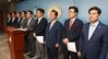 자유한국당과 바른미래당 소속 정무위원들이 15일 국회 기자회견장에서 정무위 회의 파행에 대한 입장을 밝히고 있다. /연합뉴스 |