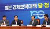 당청은 16일 국회에서 일본 경제보복대책 당청연석회의를 갖고 기업 피해를 최소화하고 외교적 노력방안을 논의했다. 이 자리에 참석한 김상조 청와대 정책실장은 “이번 일을 우리 경제의 체질을 바꾸고 한 단계 더 도약하는 계기로 삼겠다”며 “이에 대한 정부 의지는 어느 때보다 확고하고 우리 경제 역시 가능케 하는 튼튼한 능력을 갖고 있다”고 말했다. 그러면서 김 실장은 “이번 추경 뿐만 아니라 내년도 예산안에도 소재부품 장비 산업의 능력을 근본적으로 발전시킬 수 있는 대대적인 지원책을 담겠다”고 강조했다.