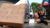 앞에 놓인 문구를 보고 행인들이 돈을 줍니다.