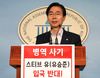 국회 패스트트랙(신속처리 대상 안건)과 관련한 경찰 수사에 대해서는 “정치의 무능함을 보여주고 있는 것”이라고 비판했다. 그는 “국회가 하는 일이 뭡니까”라고 반문하며 “실타래같이 얽혀 있는 갈등을 해소하고 푸는 역할을 해야 하는데 오히려 그런 기능을 자정 능력이 떨어진다는 것을 보여주고 있는 것”이라고 말했다. 이어 “저는 이 부분에서 여야 모두 좀 더 각성하고 반성해야된다”고 비판했다.