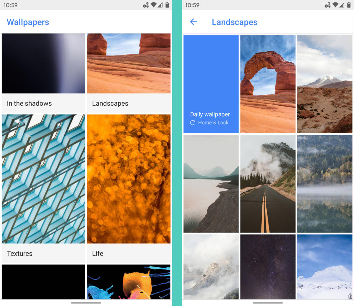 하지만, 가장 좋은 점은 월페이퍼 앱이 사용자가 좋아하는 어떤 카테고리 내에서 매일 자동적으로 월페이퍼를 새로운 이미지로 바꿀 수 있다는 것이다. 매우 중요한 다양한 업무들 사이를 이동할 때, 작고 아주 멋진 놀라움을 준다.