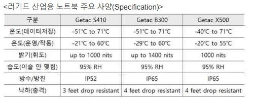 러기드 노트북은 거친 환경에서도 쓸 수 있게 만든 특수 노트북이다. 산업용 러기드 노트북을 취급하는 러기드코리아에 따르면 ▲데이터 저장은 '영하 51도~영상 71도' ▲컴퓨터 운영은 '영하 21도~영상 60도'까지 가능(보급형 모델 Getac S410 기준)하다. 러기드 노트북이 '더위와 습도를 안 먹는 컴퓨터'로 통하는 이유다.