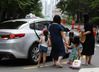 서울 서대문구 한 아파트단지에서 엄마와 아이들이 택시에 오르고 있다. 사진=연합뉴스 |