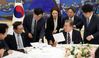 문재인 대통령과 여야 5당 대표가 18일 오후 청와대에서 일본의 경제보복 대책을 논의했다. 회담 후 문 대통령이 당 대표를 비롯해 회의에 배석한 각 당 비서실장, 대변인, 청와대 비서실 관계자 등과 합의문을 논의하고 있다. (사진=연합뉴스) |
