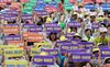 서울 지역 8개 자율형사립고에 대한 교육청의 청문을 하루 앞둔 21일 서울 광화문 광장에서 열린 서울 자사고 학부모 연합회 집회에서 참석자들이 자사고 지정 취소 등의 내용이 담긴 손팻말을 들고 구호를 외치고 있다. 사진·김정근 선임기자 |