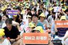 21일 오후 서울 종로구 광화문광장에서 서울시자율형자립고학부모연합회 주최로 열린 '청소년 가족문화 축제 한마당'에 참가한 자사고 학부모들이 손피켓을 들고 있다. 뉴시스 |