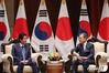 문재인 대통령이 미국 뉴욕 파커 호텔에서 아베 신조 일본 총리를 만나 환담을 하고 있다. (청와대 페이스북) 2018.9.25/뉴스1 |