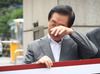 김성태 자유한국당 의원이 23일 오전 양천구 서울남부지검 앞에서 KT에 딸을 부정 채용시킨 혐의로 자신을 기소한 검찰 관계자들을 규탄하는 1인 시위를 벌이는 중에 눈물을 닦고 있다. 연합뉴스 |