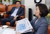 조선일보 보는 나경원 - 나경원 자유한국당 원내대표가 24일 서울 여의도 국회에서 열린 중진의원 연석회의에 앞서 러시아, 중국, 일본의‘독도도발’을 1면 보도한 조선일보를 들고 있다. 2019.7.24 뉴스1 |