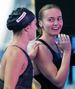 미국 케이티 러데키(왼쪽)가 지난 21일 경영 여자 자유형 400m 결승에서 자신을 꺾고 1위를 차지한 호주 아리안 티트머스에게 축하인사를 건네고 있다. 광주=연합뉴스 |