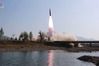 5월 9일 북한이 쏜 단거리 미사일 추정체가 이동식 발사차량(TEL)에서 공중으로 치솟고 있다. 그림은 이튿날 조선중앙TV가 공개한 훈련 모습. 연합뉴스 |