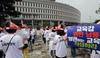 전북 상산고 학부모들이 지난 17일 정부세종청사 교육부 앞에서 교육부에 전북도교육청의 자사고 자사고 지정 취소 결정에 대해 부동의 할 것을 요구하고 있다. [뉴스1] |