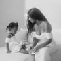 사진 속 킴 카다시안은 오프숄더 톱을 입고 글래머러스한 몸매를 뽐냈다. 킴 카다시안은 같은 컬러의 민소매 원피스를 입은 딸을 사랑스럽게 바라보고 있다.
