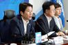 더불어민주당 이인영 원내대표(왼쪽)가 31일 서울 여의도 국회 의원회관에서 열린 확대간부회의에서 발언하고 있다. 뉴시스 |