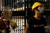 송환법 반대 시위자 44명에 폭동 혐의가 적용된 사실이 알려지자, 시민 수백명이 콰이청경찰서 앞에 모여 항의하고 있다. 팻말에는 석방을 뜻하는 '放人(방인)'이 적혀있다. /사진=로이터 |