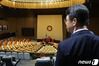 추가경정예산(추경)안 및 각종 민생법안, 일본의 경제보복 철회 요구 결의안 등을 처리하기 위한 본회의 시작을 앞둔 1일 오후 여야가 이견을 좁히지 못하고 있는 가운데 방호 관계자가 텅 빈 국회 본회의장을 바라보고 있다. / 사진제공=뉴스1 |