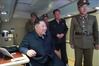 북한이 지난달 31일 김정은 국무위원장의 지도 하에 '신형 대구경조종방사포 시험사격'을 했다고 조선중앙TV가 1일 보도했다. 사진은 이날 중앙TV가 공개한 것으로 김정은 위원장이 시험사격을 참관하고 있다. (사진=연합뉴스) |