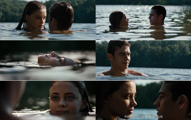 공개된 <애프터> 무삭제 영상은 ‘하딘’(히어로 파인즈 티핀 분)과 ‘테사’(조세핀 랭포드 분)의 두근두근 떨리는 첫 키스의 순간을 담고 있다. 햇볕이 따사롭게 비치는 드넓은 푸른 호수에서 단 둘이 수영을 즐기고 있는 ‘하딘’과 ‘테사’. 적막만이 감도는 가운데 두 사람의 호흡 소리만이 정적을 깨우고 있어 보는 이들에게 묘한 두근거림을 안겨준다. 거리를 두고 있던 두 사람은 시간이 지날수록 점점 더 가까워지고, 특히 ‘테사’를 바라보는 ‘하딘’의 눈빛과 터치들이 이전보다 더 과감해져 아슬아슬한 분위기를 한층 더 고조시킨다. 이때 “우린 그냥 친구는 될 수 없겠는데”라는 ‘하딘’의 대사가 무삭제 영상의 정점을 찍고, 마침내 ‘테사’는 그에게 마음을 열기 시작한다. 영상을 보는 이들에게도 ‘하딘’과 ‘테사’의 첫 사랑과 첫 키스의 감정이 고스란히 전해져 두 사람만의 <애프터>가 어떤 스토리로 전개될지 궁금증을 배가시킨다.