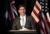 마크 에스퍼 미국 국방장관이 4일 호주 시드니에서 양국 장관회담을 가진 뒤 기자회견을 갖고 있다. AP 연합뉴스 |