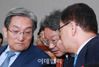 노영민(왼쪽부터) 청와대 비서실장, 강기정 정무수석, 정의용 국가안보실장이 6일 오전 서울 여의도 국회에서 열린 운영위원회 전체회의에 출석해 의원들의 질의에 머리를 맞대고 논의하고 있다.(사진=노진환 기자) |