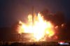 북한이 지난 6일 발사한 신형전술유도탄이 이동식 미사일발사차량(TEL)에서 발사되고 있다.[연합] |