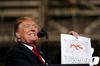 도널드 트럼프 대통령이 지난 2월 시리아 내 IS 잔존세력 100% 격퇴를 선언하며 관련 지도를 들쳐보이고 있다. © 로이터=뉴스1 |
