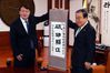 문희상 국회의장(오른쪽)이 7일 여의도 국회 의장실에서 윤석열 검찰총장의 예방을 받고 ‘파사현정(破邪顯正· 그릇된 것을 깨고 바른 것을 드러냄)’이 적힌 족자를 선물하고 있다. 연합뉴스 |