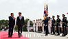 정경두 국방부 장관(왼쪽)과 마크 에스퍼 미국 신임 국방부 장관(왼쪽 두번째)이 9일 오전 서울 용산구 국방부 청사에 도착해 의장대 사열을 받으며 이동하고 있다. /남용희 기자 |